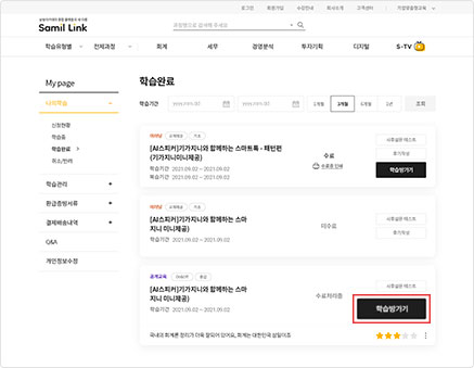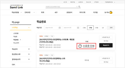 4과정 종료 후 전체학습이력 메뉴에서 수료증 출력